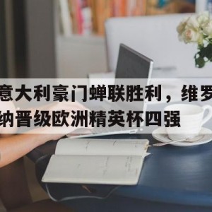 #意大利豪门蝉联胜利 #维罗纳晋级欧洲精英杯四强